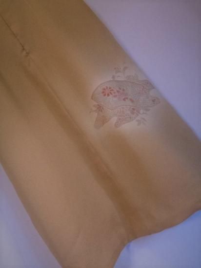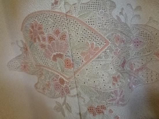 こちらの商品は、上品なスワトウ刺繍が施された、付下げのお着物からお作り致しました。
