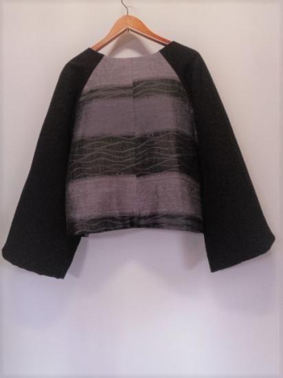 京都西陣 弥栄織物さんの、高価な袋帯反物と、黒留袖のお着物から、ジャケットをお作り致しました。