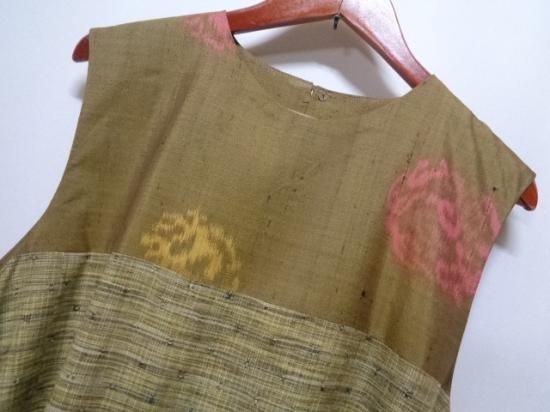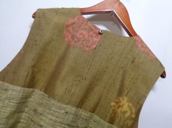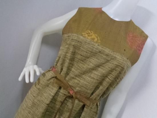 ■お洗濯方法・・・洗剤を溶かした中へ浸し(長時間浸すと色が出る事がございますのでご注意ください)、優しく押し洗い(出来るだけシワにならない様に)をする程度で、絞らずに形を整え、風通しの良い場所で陰干ししてください。また、半乾きの状態で、アイロンがけをして頂く方が、シワが取れやすく、奇麗に仕上がります。裏地が付いておりますので、裏地に沿うように、また、高温で裏地が縮まない様にお気をつけ下さい。