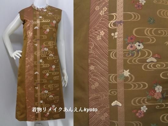 柄は織りによって施されており、茶系の地に季節の花々が柄が織られております。