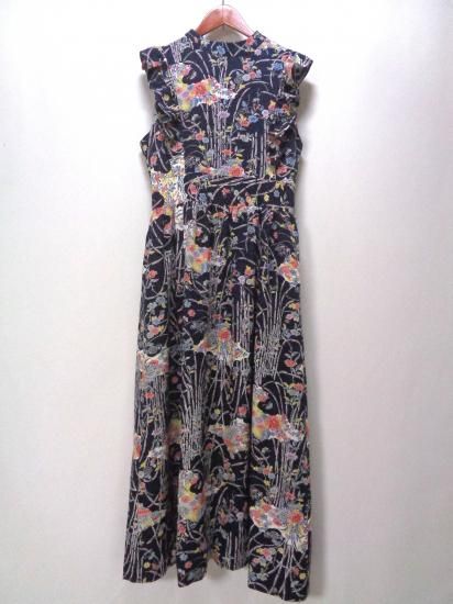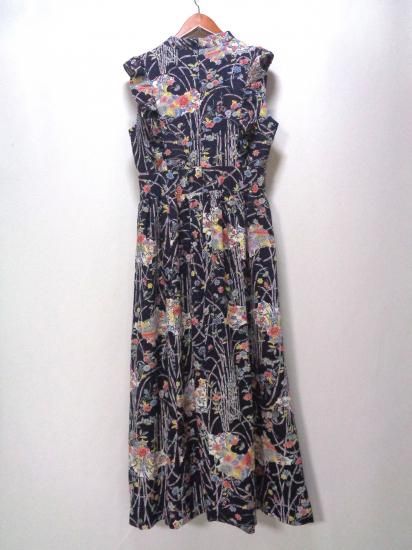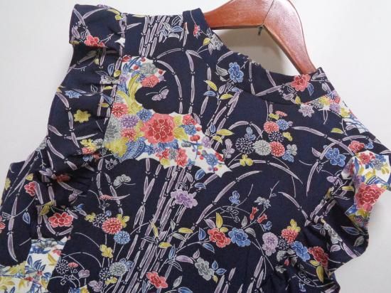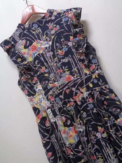 スタンドカラーに、可愛らしいフリルを入れた、ギャザーワンピースでございます。
