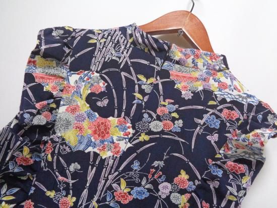 ■お洗濯方法・・・お洗濯は、洗剤を溶かした中へ浸し(長時間浸すと色が出る事がございますのでご注意ください)、優しく押し洗いをする程度で、絞らずに形を整え、風通しの良い場所で陰干ししてください。また、アイロンは生地があまり伸びない様にご注意いただき、軽くあててください。ご心配な場合は着物専門のクリーニング店へお出し下さいませ。