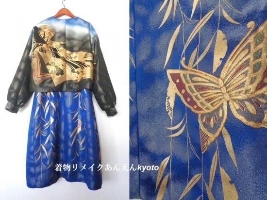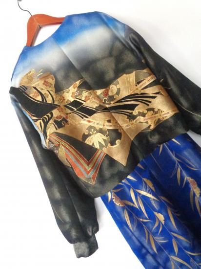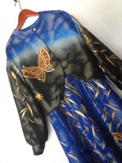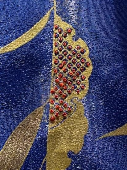 こちらの商品は、糸目刺繍、相良刺繍、ラメ糸が使用された振袖のお着物からお作り致しました。