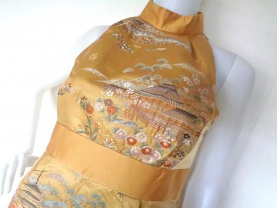 ■生地のランク・・・B 状態の良い帯でございましたが、仕上げの際にうっかり、前スカート部分にアイロンで傷を付けてしまいました。お安く販売させて頂きますので、画像にてご確認頂き、予めご了承の上、ご購入をお願いいたします。仕立ての折り跡やシワが残っている箇所がございます。その他、見落としがある場合がございます。帯は生地の性質上、織り傷、引っかき、糸が出ている箇所がある場合がございます。予めご了承下さいませ。