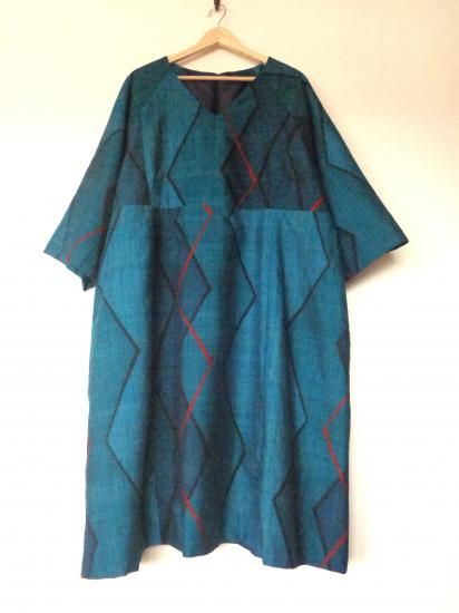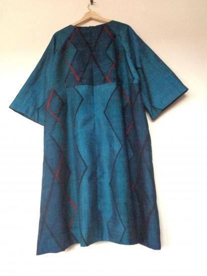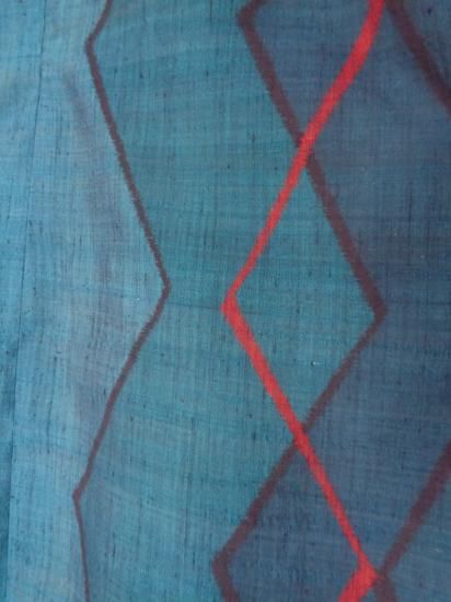 ブルー系で幾何学模様の柄が織りによって施されております。