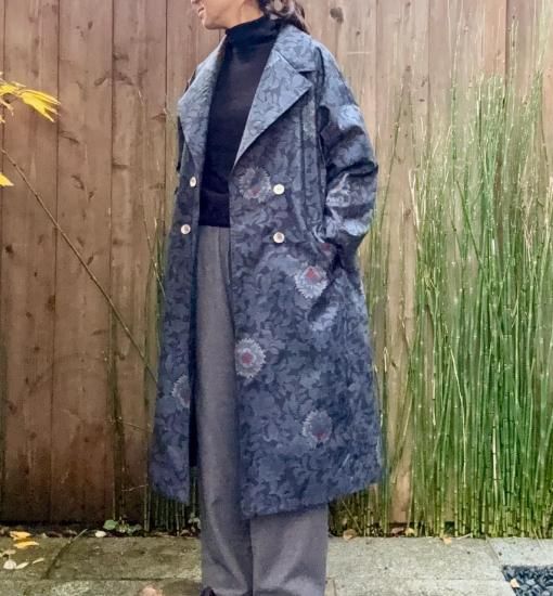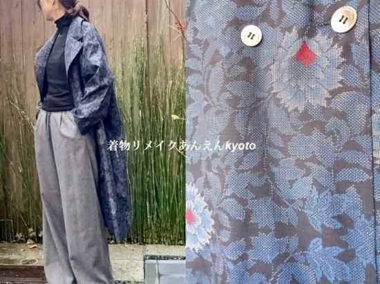 こちらの商品は、仕付け糸付き未使用泥藍大島紬のお着物からお作り致しました。